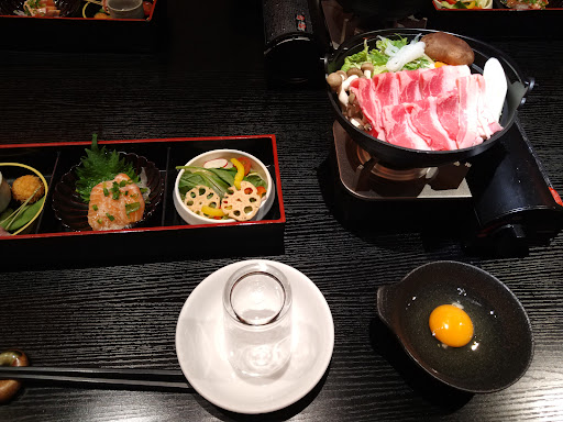 大人は宴会コースにしたのですが、席に案内されてすでにテーブルに小皿とすき焼きが用意されていました。 「追加の注文はタブレットで」とだけ説明があり、コースについての説明は無かったので最初は「え?料理これだけ?」と思いました。