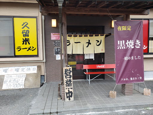 熊本ラーメン育元は行った事ありますが、吉見にある久留米ラーメン育元初訪問です。9月12日(日)13時30分、駐車場は結構停まってます、空いてるスペースに停めて、いざ入店。中に入りすぐ左側に券売機があります、結構なボタンがあり、悩みそうですが、1番上のボタン4つが大きくなっていて、オススメ具合が伺えます。小生も御多分に漏れず左上の福岡久留米チャーシュー麺980円をポチッ❗餃子450円も食べたくポチッ❗ご飯も食べたくちりめん山椒卵かけご飯350円もポチッ❗パートナーは久留米ねぎラーメン840円をポチッ❗席は店員に決められる?システムで、テーブルに水が2つ置かれていてそこですみたいな。座り店内観察しているうちにラーメン2杯到着、続いてちりめん山椒卵かけご飯が来て最後に餃子が来て勢揃い。ラーメンスープをススル、濃厚豚骨系の白茶スープ、うん、旨い、次にチャーシュー、箸で掴もうとするとボロボロ崩れてしまいます、相当な柔らかさです、箸ではなくレンゲですくって食べる事をオススメします。ねぎもキクラゲも合います。麺はやっぱり豚骨ラーメンのそれと一緒で細硬麺。麺の硬さは柔らかくする時だけしか注文出来ず、基本は硬麺で来るようです、針金、粉落としなどは無し。各テーブルに胡椒、紅しょうが、激辛調味料、それと白ゴマが置いてあります、レンゲと箸、醤油、酢、ラー油などはありません。高菜もあれば尚よかったですね。次にちりめん山椒卵かけご飯、卵とちりめん山椒が入っていて、醤油が無いためちりめんに味が付いているのですね、ご飯は少なく、これで350円は高めですかね。餃子はタレが皿に付いていて、味噌っぽいタレでいただきます。個人的には3点セットでいただきたく居候。替え玉が150円も高いような気が……某ラーメン屋は替え玉50円なので...