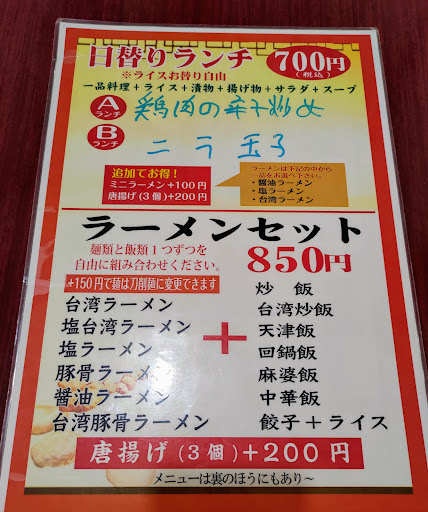 Read more店舗の場所は変わらず、台湾料理店から 中華料理店に変わっている。 店員も店名も変わっていて、メニューも結構変わっています。 追記 2025 6月 ...