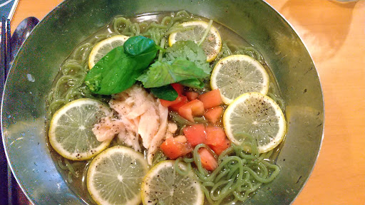 8月16日に行ったが平日扱いではなく、ランチメニューがなく、残念な思いをした。仕方なくオススメメニューの檸檬ののった翡翠麺をたのんだ。 が、まあまあ、美味しい。ただ何味かというと塩味かな~。おそらく次は頼まない。そうそう!ロボット君が運んでくれたが、素っ気なく感じた。 それと、金属の器に違和感を感じた。 サンプルほど...