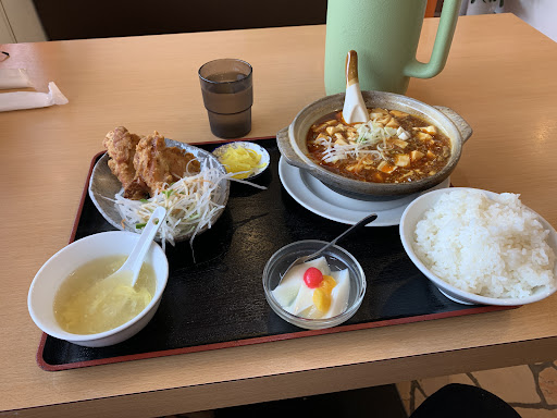 こちらには今日初めて来ました。 店内は綺麗にしてあり中国の飾り付もしてあり、店員さんも中国の方のようでした。 昼のサービスランチなどはなくメニューは豊富にあり定食もけっこうあり980円(税込)に統一してます。 麻婆豆腐定食頼みました、土鍋に入っていて2人前ぐらい量があるのでは😵というぐらいのボリュームです、付いている唐揚げは普通の唐揚げの倍以上の大きさがあります、ご飯も大盛りでした、デザートの杏仁豆腐までついております。 メチャお腹いっぱいになりました。 少食の人や普通の女性では食べきれないでしょう。