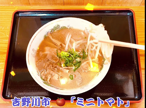 🌟🍜🍅【吉野川市 拉麺 『ミニトマト』】🍅🍜🌟 【商品名】徳島ラーメン焼飯セット ¥1.000円 【店舗名】拉麺「ミニトマト」 【所在地】徳島県吉野川市鴨島町西麻植字広畑75-1 【営 業】11:00〜20:30 【休 日】月曜日、火曜日、金曜日 【連絡先】0883-24-1015 【支払い】現金のみ(自動券売機) 【駐車場】4台(店舗横駐車場) 【座席数】22席(カウンター6席、4人掛けテーブル1 席、4人掛け小上がり3席) 【順 路】JR西麻植駅から、徒歩約10分 【備 考】こちらのお店は、徳島県の西部吉野川市鴨島 町を東西に走る国道192号線沿いにあるラー メン店には珍しい店名の「ミニトマト」さんで す。 今日はマンホール調査の途中に、昼食を取 るため、初めて訪問してみました。 メニューは、中華そば、徳島ラーメン、ホ ルモンラーメンの3種類があり、ラーメン券 売機で食券を購入して席に着きます。 本日は、徳島ラーメンに半焼き飯が付いて いてお得な、 ◉...