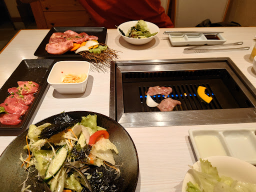 Read more吉岡バイパス沿いにありますが、店舗は直接面していないので、看板を目印に入ると奥に駐車場があり、店舗があるので分かりにくいです。本店に行ったことがないので、全くの板門亭素人です。小さな店内は、テーブル席と座敷があります。座敷は掘りごたつでないので、足の悪い方は要注意。グリルは小さ目。今時ではない。メニューは少な目。最低限のものはあるって感じ。今時ではない。キムチは塩分高めで今一つ。値段は、少し安い気がしますが、めちゃくちゃ安い訳ではない。普段使いのお店って感じでしょうか。焼肉は特別な日しか行かないので、店内もメニューも、もう少し特別感が...