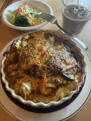 Read more祭日お昼12時に来店。2組目でした。 経営大丈夫?って思うほどのどかな雰囲気でした。 祭日でランチはお休み事です。 暗い店内で、ワイワイ、ガヤガヤの感じはないです。落ち着いた感じです。 ノスタルジックで昭和の懐かしい空気が流れてます。 30年前の学生の頃前橋の中央通りから少し入った所にありとてもおいしくいただいた思い出の洋食屋さんです。 あの頃ドリアが美味しくて通ったので何十年かぶりにドリアをいただきました。 ランチのカレードリア、アツアツでお野菜ごろっと、チーズたっぷりでとてもおいしくいただきました。 青じそと明太子のパスタもアツアツでチェーン店にはないお味のことです。 セットのサラダ、カフェラテはどこにでもある感じです...