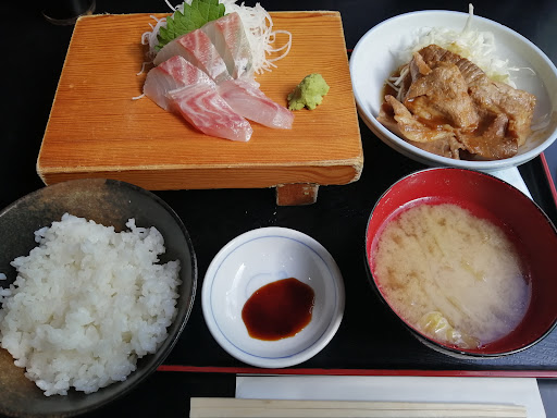 Read moreここにお店があるのは知っていましたが外観が何とも怪しい雰囲気であり入りあぐねていました。今日は勇気をだして入店し、お刺身と豚生姜焼きのセットでランチを頂きました。コショウダイのお刺身は甘くて美味しく、豚生姜焼きもご飯が進むお味でした。入店にやや勇気が要りますがおすすめ!