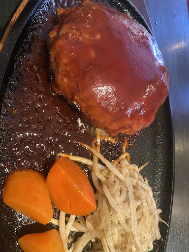 火曜日以外は土日祝日でもランチがあり嬉しいです😊 数ヶ月ぶり訪問です。前回の時にメニュー見てて👀黒毛和牛🐂ハンバーグ美味しそうだなって🤔今回は悩まずハンバーグ300g(ポン酢)アッサリをchoiceしました。 見た目が大きく厚みがあり美味しそうです。爪楊枝で刺したら半分隠れたので高さはおよそ3㌢はあるかと推測します。 分厚いのに箸で簡単に切れます。 切ると肉汁溢れ出てきます。 ポン酢タレはかけずに切ったハンバーグを浸して食べました。この方が鉄板もハンバーグも冷めないので最後まで熱々ハンバーグでした。 肝心のハンバーグの味は最高に美味しく肉の旨味を堪能出来ました。 今回は🍚ご飯も炊きたてに近く色艶&炊き加減も良く美味しい🍚でした。☆1個復活で満点です! 相変わらずホール女性店員さん達は活気がありテキパキ動いてます。 美味しい黒毛和牛🐂ハンバーグ御馳走様でした😋 又時間が経過したら伺いたいです。