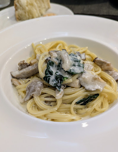 DIC川村記念美術館で最後となるコレクション展を見に佐倉市までやってきたこの日、アート三昧の後にどこで腹ごしらえしようかとサーチしてヒットしたのがこちらのオステリア。美術館からクルマで30分足らずということだったので早速電話してみると、とてもフレンドリーな対応ですぐさま予約完了。店に着き、テーブルに置かれたメニューを繰ってみればランチタイムでも結構な数のお品が用意されていて、単品かパスタコース、メインコースの3パターンから選べるようになっていました。この日は夫婦でパスタコースをチョイス。5種類のパスタから選べるというのでパートナーは「タコと旬野菜の少し辛いトマトソース」を、私は写真の「ありすポークと茸のクリームソース」を。パスタコースはミネストローネとサラダ、鶏肉のパテにキッシュがワンプレートに盛られた前菜でスタート。メニューにあった「ありすポーク」は初耳だなぁ、と思いシェフに聞いてみると、岩手県の畜産農場が生産しているブランド豚で「農場の場所の名前がありす(上有住)なんです」との由。千葉では「恋する豚研究所」や「いもぶた」ブランドの豚肉は店頭でよく見かけるけど、岩手産のブランド豚を使うのがシェフのこだわりなのかしら。いただいてみればしっかりとスモークが効いて、やや軽めのクリームソースとのマッチングが素晴らしかったです。パートナーがいただいたタコと旬野菜のパスタも辛さと酸味のバランスが絶品。総じて真面目に丁寧に作っている感じがお料理の数々から伝わってきたのでした。パートナーは+450円でパスタコースに追加できるデザートメニューの中からモンブランをセレクト。このモンブランだって外側のクリームの下にはメレンゲとアイスが控え、てっぺんには栗が鎮座する本格派。前菜とパスタ、ドリンクにバゲット込みで1,750円はとても満足度高し。DIC川村記念美術館は3月末に閉館してしまうけれど、他に四街道方面に用事を作って再訪した...