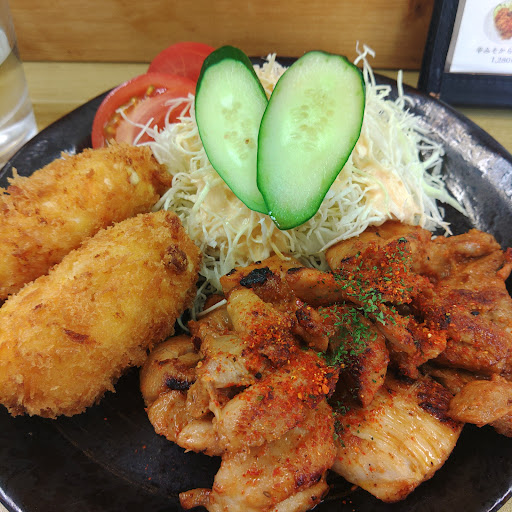 前々から気になっていたのですが、四街道まで出る機会がなく、訪ねられないでいました。 店舗のようすがわからず、初めに入ったほうがカウンター席だったのでそのまま着席。ハンバーグにも心惹かれたのですが、色々試してみたくて、お好みセットでたまごコロッケと鶏の辛みそ焼きとコーヒーゼリーを選択。 おかずが先に届き、「ご飯はどうしますか」と聞かれ、「普通で……」と答えたら、「普通が結構多いけど大丈夫ですか」と聞かれ、うっかりうなずいたら、本当にかなりの大盛りで焦りました。以前は大食いでしたが最近はそうでもないので、食べきれるか不安になりつつ、コロッケも辛みそ焼きもすごく美味しくて(副菜も、沢庵も良かったです)、なんとかご飯を平らげ一息ついたところで、「えっ、これランチのデザートなの?」というたっぷりのコーヒーゼリーに驚嘆。 こちらもなんとか腹に収めましたが、一度にこんなに食べたの久しぶりです。何て良いお店でしょう! また来ます。次はチキン...