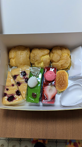 ) 場所も国道沿いなので皆さんも通りすがりに寄ってみては... Read more国道道路沿い。駐車場は店舗前。出入りがちょっと難しい。通りすがりに立ち寄ってみたが混雑はない。入ってすぐショーケースがある。 ケーキ、プリン、焼き菓子などもあるが、その場でクリームを入れてくれるシュークリームやコロネもある。コロネを注文して、その場でクリームを入れてくれる。外はパリパリ、中はサッパリとしたクリームで美味しかった。車で食べたが美味しかったの...