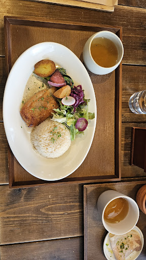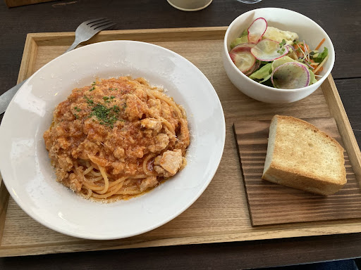 色々と美味しそうなメニューから、Pasta A 鶏肉とペコリーノチーズのパスタとフレンチフライをお願いしました。 美味しいです! 本格的なパスタで、チキンとチーズのマッチングが素晴らしい。付け合わせの自家製パンでソースを全て絡めて頂きました。おなかに余裕があったので、デザートにガトーショコラをお願いしたのですが、これがまた 美味! 甘さは少し控えめですが、しっかとしたチョコレート感があり、大満足です。 ホットコーヒーも地元で手に入る良い豆を使っているそうで、酸味が少ないけど鼻に抜ける香りが心地いい、美味しいコーヒーでした。パスタを頂いたときはボリュームがちょっと少な目かな?と思ったのですが、デザートとコーヒーを一緒に頂くと とても幸せになれました。