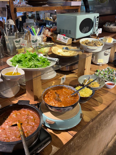 We were in a panic, hangry, and weary. We had just arrived in town and perhaps waited too late to dine. We had selected a restaurant near our hotel for dinner and google said it was open - it wasn't. We raced to another restaurant that was open - but even the cheapest item on the menu was way (and I mean wayyyyy) outside of our price range. Another restaurant nearby - closed. A takeaway chicken place - locked and dark. We desperately walked around trying to find somewhere to eat, everything in the town seemed closed! We decided to make a run for the grocery store hoping it would still be open. As our pace quickened, and our blissful contentment turned to hunger fueled edgyness, we turned a corner and saw an open sign like an oasis hanging near an arched doorway- "Slow Cafe and Community Restaurant". We approached with caution thinking the open sign might be another false promise on the trail of google inaccuracies. We stood outside the door trying to decide if what we were seeing was real or a mirage -"Buffet, pay what you want". Inside was a small crowd of cozy revelers dining at tables. A warm and welcoming "Hajimemashite" erupted from inside the open door. We were in a state of shock as we gingerly stepped inside. We felt like Peter Pan staring at the Lost Boys feast - a beautiful spread of homemade dishes as far as the eyes could see! We had an amazing meal with fresh yummy ingredients that were prepared with community and care. We left full and happy, and still in a bit of a state of shock that this perfect establishment appeared on our path right when we...