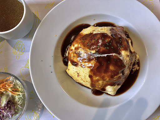 20230808会津地鶏卵のオムライス(大盛り) 王蟲のような立派なボリュームに驚いた 食べたらその美味しさに驚いた ケチャップ味のライスではなくマッシュルームの香るブラウンソースのライスがとにかく美味い 大盛りなのにあっ...