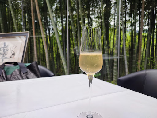 今回はランチで。 春のうららかな竹林を望むテラス席にご案内いただきました。 下記の料金にサービス料10%が付きます。