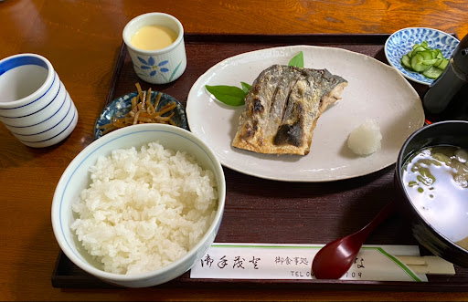 Very close to Ugawara station, is a very local shop, with just a few tables on the tatami room that get crowded as soon as lunch time hits. Specialized in seafood (teishoku) the restaurant offers all kinds of traditional sets (rice, miso soup, okazu, pickles, chawan mushi, donburi etc) with fresh sea food. Even thought the place seems to be very famous because of the アジフライ (fried mackerel) and the sashimi sets, it’s worth asking the super friendly elderly couple that runs the place what’s the recommendation. I got a grilled inada (Japanese amberjack) that was delicious. Even though it’s off the beaten path, If you’re passing the region it’s worth a visit. (No...