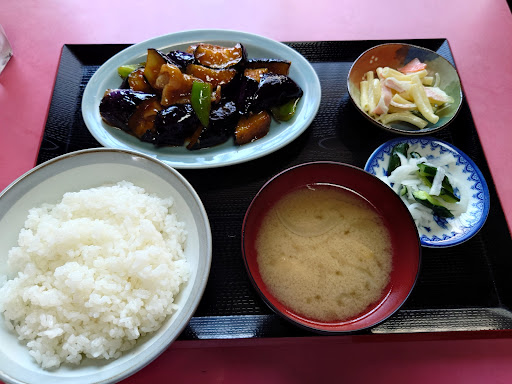 目星はつけておりましたが、今回初訪問。 しゅうまい定食がトップメニューでしたが、先客がなすの味噌炒め定食をたのんでいたので、つられて同じ物を注文。 4人がけのテーブルが4卓の、小さなお店。こういうお店が美味いのよ。 しかも、食事が終わるとすぐに次の客が入店して来る。期待大!