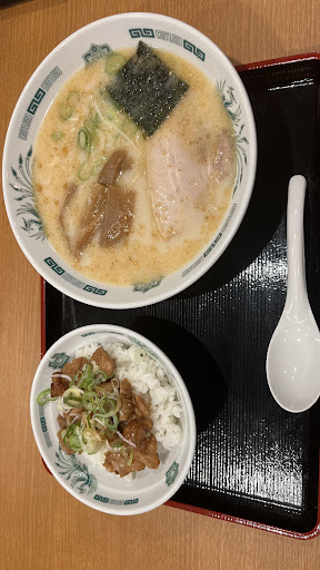 Read more夏という季節のせいかカメムシが店舗入り口にたくさんいます。 店員さんは日本人と外国人。外国人はカタコトで頑張ってます。接客は普通に悪くはない。 客層はまぁ、、、近くに万台書店があるのですがそういう客層がくるかんじ。 テーブルは脂がやっぱり拭き残しは多少あるけどもテーブルの材質的にも中華という特性上しゃーないかな、、、 連れが頼んだチャーハンは味が無味。ブラックペッパーで味付けしないとかも。まじで無味。改善して欲しい。 焼き鳥丼はまぁまぁ。チルドって感じだけどもまぁまぁ。もっとタレかけて欲しいかも? 豚骨ラーメンは薄め。連れの味噌ラーメンは濃いめで好み。 餃子はニラだかにんにくなのかわかんないけども味強めで好み。まぁまぁカリカリではあるけどももうちょっと焼き入れても美味しいような気がする。 店終い時の客席拭き掃除などはかなり念入りにしてる。 店員さんの雰囲気も全然いい。 オープンしたてなので全体的に綺麗だし、店員もワイワイではなく、真面目にハキハキ。