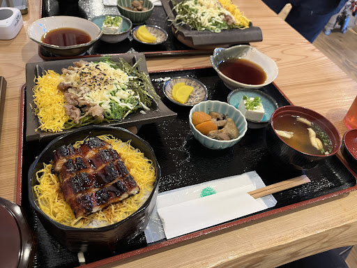 Read more2023年5月にオープンした和食屋さん。 木材を貴重とした店内。表には大きな大理石?大理石調のテーブルと椅子が設置されていました。 鰻もありましたが今回、 私は牛釜飯とミニ瓦蕎麦のセット 妻は冷たい天ぷらそば(茶蕎麦)
