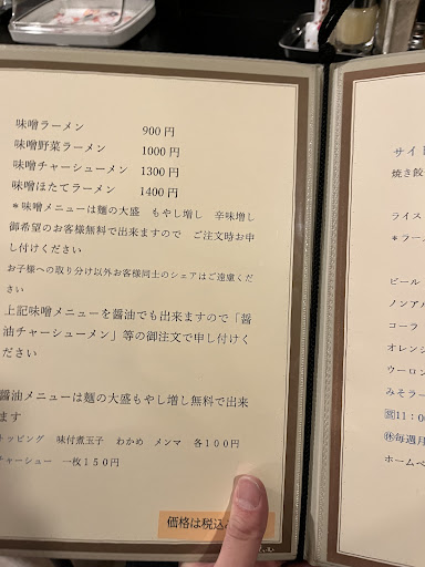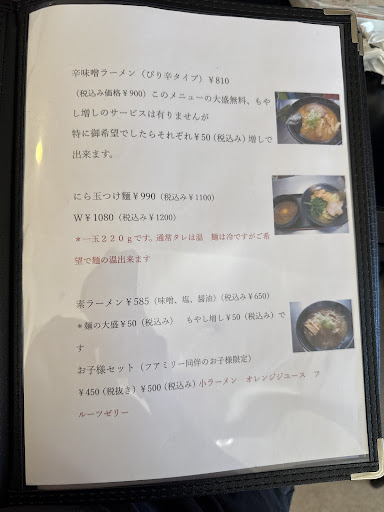 Read more2/12(月、祝)13時頃訪問。クチコミと車の駐車状況で入店を判断。 店内はお客さんで一杯、食器の片付けが間に合わない程。調理場1人?ホール2人、小学低学年のお子さんがオーダーをとっていました、繁盛店なんですね。味噌ラーメンの具材を確認、玉ねぎは入らないとの事。なので長ねぎ抜きの味噌ラーメンと野菜味噌ラーメン、餃子を注文。味噌ラーメンには、玉ねぎも長ねぎも入っている😨作り直しはなく食べて下さいと😥玉ねぎと長ねぎを取り分け…伝票にはきちんと抜きになっていたのに、お子さんは偉い🙌 麺はのびてダマになり、キャベツともやしはクタクタ…シャキシャキお野菜が好みの私たちは残念でした😭...