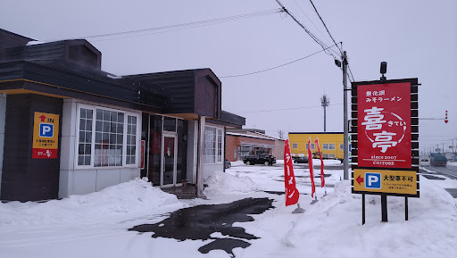 十数年位前から千歳のビジネスホテル街にあった為、地元客だけでなく旅行やビジネスのお客さんも多かったお店。 私の家からも辛うじて歩いて行ける範囲だったので時々寄ってました。 先日無性に「喜亭の味噌ラーメン食べたい」と思って行ってみたら、なんと閉店してました。 調べたら由仁に移転して再開店するとのことで少し落ち着いた平日の早い目を狙って用事を作って訪問。 相変わらずのキティちゃん愛に溢れるお店でホッとします。 入口には人手不足の為時間が掛かる旨の貼紙が…。 入店すると既に地元の方々か、数組ラーメンを食べていらっしゃいました。 奥さんと厨房には旦那さんがいらっしゃいました。 値段はご時世柄上がったものの大盛り無料だったりしてます。 以前の店舗と比べてメニューはシンプルになりましたね。 今回は味噌野菜に味玉+チャーシュー1枚トッピング普通盛りを注文。