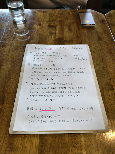 Read more駐車場から登って右の建物 四人がけ2つ、二人がけ3つ、六人座れそうなのが一つ 立派なオーディオがあり、マッタリとしたい人にはいいかも。 メニューはシンプルにランチ三種類とおやつ一つ、全てコーヒーつき。 メニューの中...