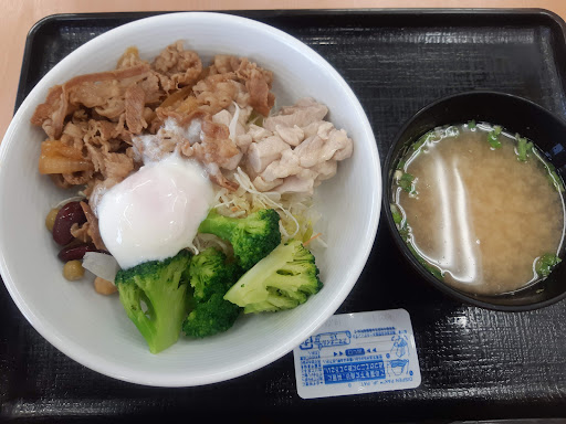 休日など、朝定食を時々利用します。いろんな定食メニューがありますが、1番に気に入っています。値段も割安だと思いますよ。今朝も利用しました。店員さんが一人で奮闘しています。今朝は団体客で混んでいました。現在、定食メニューのご飯🍚の大盛無料サービスをしています。 3/1より営業時間が変わりました。 共用駐車場なので、便利です。アプリで持帰り予約も便利です。 今日は持ち帰りを利用しました。ねぎだく牛丼も美味しい味付でした。 今朝はハムエッグ牛小鉢定食に辛子明太子をトッピングしました。もちろんご飯は大盛です。今日のお昼ごはんは『ねぎ塩豚定食』期間限定です。ごはんが大盛無料で、味も美味しかったです。コロナウイルス対策で、カウンター席にシールド板が設置されていました。お昼は、むちゃくちゃ混んでいました。 今日のお昼ご飯は、お薦めメニューの『牛焼肉...