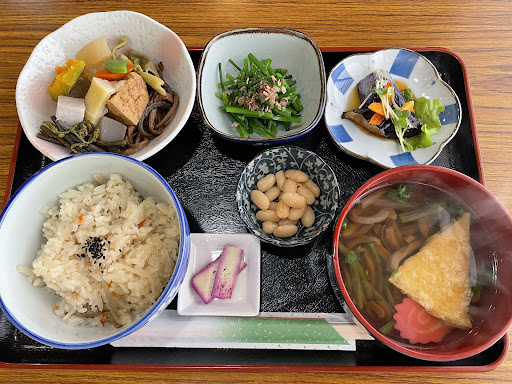 Read moreくさぶき民家をそのまま店舗にしており、庭の景色を眺めていると気持ちの良い風が通り心落ちつくとても雰囲気の良いお店です。 料理も山菜を中心に地元食材にこだわっているようで、どこかホッとする優しい味付けでした。 定食のお蕎麦は徳島の祖谷そばのように太く出汁は甘めの味付けでこちらにも山菜がしっかり入っており、個人的に山菜が好きなこともありますが、大満足な定食でした。 小鉢もナスのたたきや椎茸の揚げ物等、どれもヘルシーでとても美味しかったです。 私が12時過ぎくらいに入りましたが、その後お客さんが2〜3組入ったら在庫が尽きたようで営業終了となり、連休等は早めに閉まってしまう可能性があるみたいですね。 近くに来た際は是非ま...