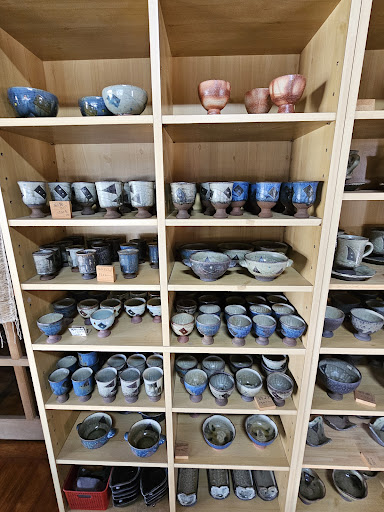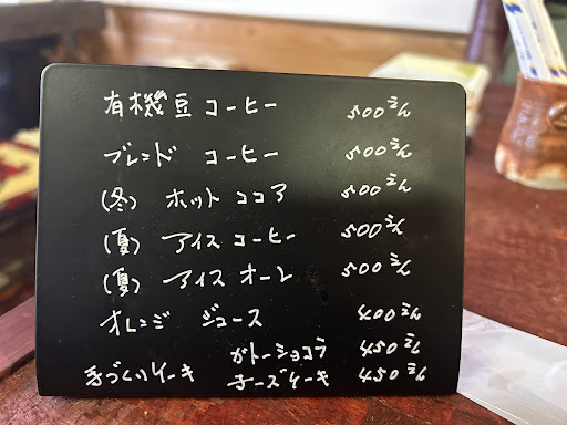 Read moreこのエリアでは貴重なCafeです。 陶器のギャラリーがメインの一軒家ですが、全ての陶器がとても良い空気感を演出してくれます。 △をモチーフに様々な実用的な食器も展示販売されていますが、ワタシ的にはブルーで色付けされた陶器がとても好きです。 2階がCafeの大きなスペースですが、1階吹き抜けで設計されておりかなりイケてる雰囲気です。 寡黙なお兄さんが、コーヒーを豆から逐一挽いて下さり点てて頂きます。当然提供されるコーヒーカップはコチラのモノ。 香りよく居心地の良いスペースで、古い友人と2時間も過ごしました。(コーヒー5杯頂きました^^) 窓の外には遠望の霧島連山。。。温泉の蒸気も望みます。 不思議ですね、網戸越しなのに何にも違和感がなかった。 生活の中の素晴らしい絵だからと思います。 大阪人にとって喫茶店での友人との時間はMUST ゆっくりと気持ちの良い時間が流れる...