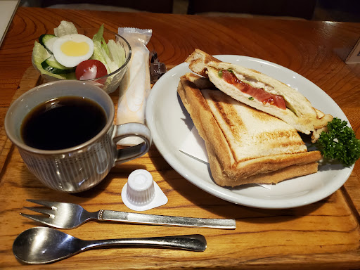 お店のママはとっても話しやすい、当たりの優しい方でした。 開店から14時まではセットで飲み物とサラダが着くそうで、ホットサンドを頼むとコーヒーとサラダが一緒に来ました。 お得!そしてホットサンド美味しい! カレーも気になる!