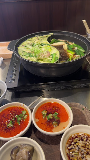 Read morePretty good food. You get a choice of two broths (from several more) that are put on the hot plate in the middle of your table. It's buffet style for noodles, veggies, rice, and desserts but they bring out meats and in my case sake. Full disclosure, they assume everybody at the table eats meat and charges accordingly, so there's that. Also, it gets pretty warm with that hot pot going in the middle of the table, so dress...
