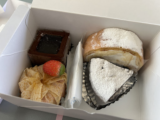 生菓子は遠い街まで来た洗練、持ち帰れぬと判断、断念焼き菓子を。 でも意地汚くお腹パンパンなのにロールケーキ?を一切れ。