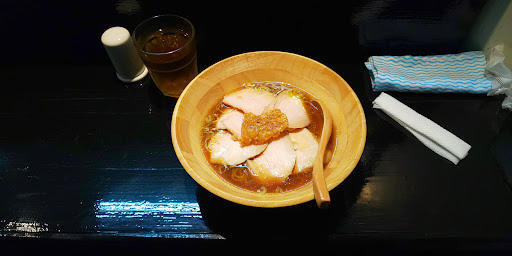 Read more絶品っ!家族5名で利用しました。(5席なので貸切) 自家製麺が良い!ちぢれツルツルしこしこ! 岩塩かな?足りなかったら足して下さいと渡されましたが 口がスープに慣れるのと、麺が良い感じにスープに絡むので 不要でした。(子供たちも使ってませんでした) 木製器なのでスープ温度管理も良いですね! 麺も少ないかな?って思いましたが意外とちょうど良い感じでした。 大盛は自家製麺なのでありません。麺がスープを吸ってるのか 絡みが良いのか最後までツルツル食感のまま麺が美味しく食べれました。 足りない人は、肉ご飯追加してスープダンクで満足するはず。 玉ねぎソースのチャーシューご飯の方は、 ソースがニンニク効いてパンチがあるので 食べるなら最後がお勧め。急に味が濃い商品なので お店のラーメン好きな人は頼まなくて良いと感じます。
