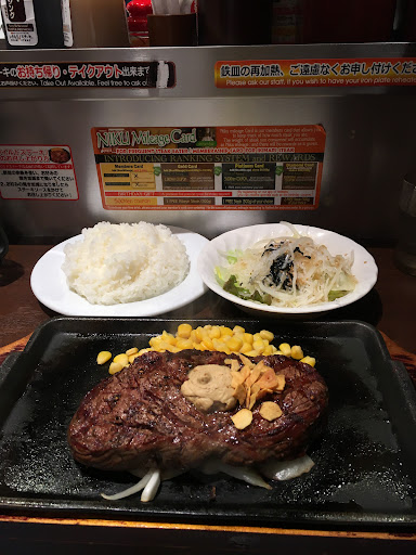 Good steak for the price. I asked for medium rare and it was cooked perfectly. The fact that you can choose how much steak you want (by the gram) is nice as well. If you add the salad and rice set, you have a choice of small, medium, or large bowl of rice for the same ¥350. For the salad, you can choose between two types of salad (small size only). Best to eat early (1730-1800) as it gets quite...
