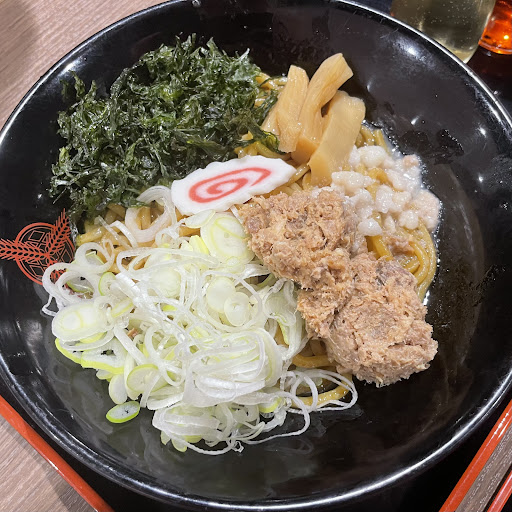こちらの店舗は初めてです。イオン座間の3Fのフードコート内にあります。平日13:15頃到着。お昼時なので、フードコート内の席はだいぶ埋まっており、空きを探すのが大変でした。先に席を確保している人が多く、荷物だけの席が多く見受けられます。 またカウンターのような席には隣の席を使って荷物を置いている人も多いです。しかも2席とかの人もいます。またテーブルの上に置いてる人も、見受けられます。 さて注文はカウンターです。多摩ニュータウン店しか行ったことがないので、しかもフードコートは初なので、ちょっと勝手が分かりません。(多摩ニュータウン店はテーブルにあるQRから注文)普通にレジで注文でした。レジカウンターでは写真と値段が書いてあるものが置いてあり、選んで注文できます。そしてアプリのクーポンで唐揚げ1個をお願いしました。そしてアプリのクーポンを見せましたが、来店ポイントのQRの説明はなく、ありますか?と聞いたら面倒くさそうに出してくれました。んー。あまりよい対応じゃないです。待つこと数分。アプリのクーポン見せたので、店員さんからQRコード出してくれてもいいような気がしますが。またはレジカウンターに置くなどしてくれればと思いました。 さて呼び出しベルが鳴り、取りに伺います。カウンターで受け渡し対応してくれた方もあまり感じがよくない。んー。多摩ニュータウン店だけなんだなぁと(あんなに元気なのは、まぁフードコートだから元気な対応しづらいですもんね) あと気づいたのは、レジカウンターにしか各種の調味料がないので、食べながら色んな調味料を楽しめないんだ。あとつけ汁を割るスープがないのかな?見当たりませんでした。考えてなかったです。路面店舗とフードコートではこういう違いがあるんですね。勉強になります。味は安定の味でした。イオン座間内なので、ものすごい駐車場スペースの数です。ただ週末や夕方は周辺道路は逃げ道が少な...