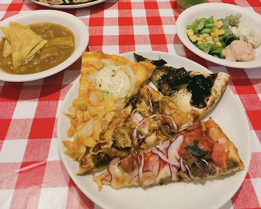 Read more2023年10月27日(金)11:15に娘と2人で入店しました。出迎えてくれた女性スタッフは笑顔の綺麗なとても優しい方でした。店内は広く、ゆったりと落ち着いて食事ができる雰囲気です。平日金曜の11:30頃は10組くらいの入りでした。メインのピザは10種類が常に並んでいて補充は手早くスカスカになる事はありませんでした。評判のバーガーピザはひき肉が生地に挟み込まれていてとても美味しかった!もし無くなってしまってもリクエストすればすぐに作ってくれます。サイドメニューはパスタが3種類(ナポリタン、ペペロンチーノ、カルボナーラ等)待てば別の種類の新しいパスタも出てきます。それからチーズマカロニ(トロっとした濃厚なチーズを絡めたマカロニ)、タコミート(ひき肉をタップリ使った豆を絡めたスパイシーなミートソース、ご飯とも合いました。)フライドポテト(プレーンとスパイシーと2種類)、スープ1種類(濃厚なトマトベースのミネストローネのような具材もたっぷり入ってました。)、サラダはベーコンポテトサラダ、普通のポテトサラダ、コールスロー2種類、生野菜5種類(ニンジン、豆、アーリーレッド、レタス、キャベツ)、カレーは具材がたっぷり入った濃厚な味わいで美味しかった。ドリンクはソフトドリンク(オレンジやファンタ、お茶系、ウーロン茶、コーラ等)とコーヒーがアイスとホット。それからナチョス(黄色いポテトチップスのような)、デザートが2種類(コーヒーゼリーとプリン)このプリンが濃厚でとても美味しかった。他にデザートピザが2種類(アップルシナモンとバナナチョコ)内容は以上でした。多くの方が書かれているように以前提供されていたソフトクリームと唐揚げはありませんでした。コロナ前で本日のランチ1680円(税込)よりも安い頃にソフトクリームや唐揚げが提供されていた頃を経験している方はかなり不満に思うかもしれません(値上げの上に種類が減らされて)。でもわたし達はその頃を知らないのでとても満足できました。料金的にもこのレベルなら手頃な金額だと思います。今後も定期的に通うつもりのお店です。もう一つ良い点は駐車場が広くて無料...