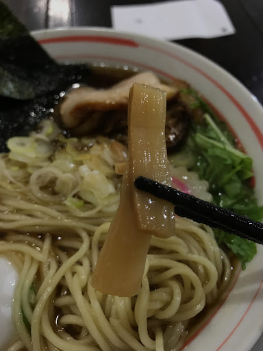 典型的仙南スタイル(低加水細麺ストレート・動物系脂多め透明スープ・歯ごたえのある短いメンマ)ですが、私はその中でも群を抜いて美味しいお店だと思いました。 中華そばと同じスープだと思いますが、魚介がしっかり香る強めの醤油でした。最近の流行ラーメンと比べると色が若干濃いめです。動物と魚介のバランスをしっかり吟味されたのだろうと想像できる丁寧な作りのスープで好感です。 看板に麺が自家製とありました。見た目は柔らかそうに見えましたがちょい固めストレート細麺です。 チャーシューは薄造り豚バラとろとろ系です。外側にしょっぱい強めの味付けがしてありますが、決してしつこくなく、最後まで美味しく食べられました。 閉店ギリギリに伺いましたが、嫌な顔1つされませんでした。人気店なのに素晴らしい接客です。