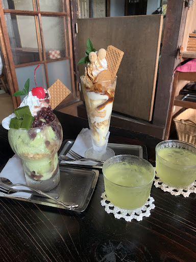 Read more最初店に着いた時は店が開いているのかわからなかったが扉を開けて入ったら優しそうな女性の方がいて開いていたのだとわかった。店内はレトロな雰囲気でとても落ちついている。スイーツは和茶屋なので和風なものが多い、初めてなので一つしか食べてないがきな粉パフェは絶品だった。きな粉やバニラ、黒蜜、餅、生クリームがはいっていてバニラときな粉のセットがこんなに美味しいのかと驚かされた。また自分は桜が咲いている頃に行ったのだが暖かい緑茶もセットでついてきて温まるしパフェとセットで飲んでも美味しかった。そして写真はないのだが値段がきな粉パフェは800円でかなり大きかった。とても満足感がある。また付近を寄った際には違うものも試してみ...