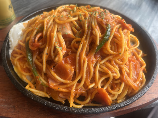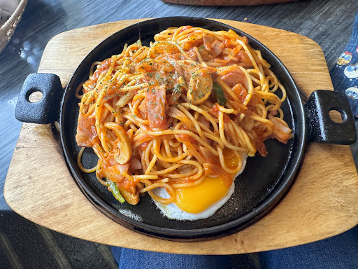 道から入り組んだところに看板が見えた。 5、6人のおばさん連中が解散するところだった。 どうも常連客が集う店みたい。 入ると、店はレトロな雰囲気だ。 クチコミでナポリタンスパゲッティが美味しいということで、ナポリタンスパゲッティ卵付き580円、セットでプラス200円でアイスコーヒーを注文した。 程なくナポリタンスパゲッティが鉄板にのって出てきた。普通に美味しかった。それ以上でもそれ以下でもなし。鉄板なので、最後まで温かいままなのが嬉しい。 アイスコーヒーは食後と言ってなかったので、この後すぐに出てきた。可もなく不可もなくかな。家で結構いい珈琲豆を挽いて淹れているので、結構珈琲には煩いので悪しからず。 物価高のなか、これほどリーゾナブルな店を探...