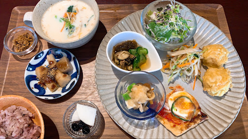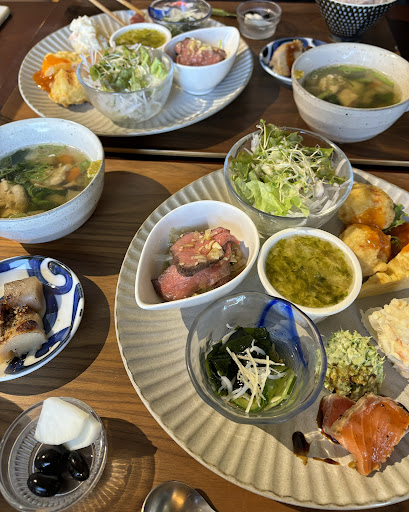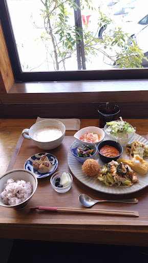 ランチ¥1650(税込)十五穀米と十品目以上の様々なおかずどれも美味しくてボリュームありましたが完食できます。 +¥500(税込)でドリンク&デザート2種も黒豆豆乳(黒蜜付き)も初めて飲みましがコクがあって美味しかっです。 店員さんもみんな感じ良かったです。しっかりした箸は持って帰って菜箸に使ってくださいとのことで、ありがたくいただいて帰りました。 ※ランチ提供は木〜月曜日のみ ※支払いは現金とゼンツウジペイのみです。 2階のセレクトショップも服だけでなく、アクセサリーや靴、財布や下着まで色々。高い個性的な物だけでなく、パステルカラーの普段遣いしやすい手頃な価格帯のものもあったので見るだけでもオススメです。 ※駐車場は店前と裏側...