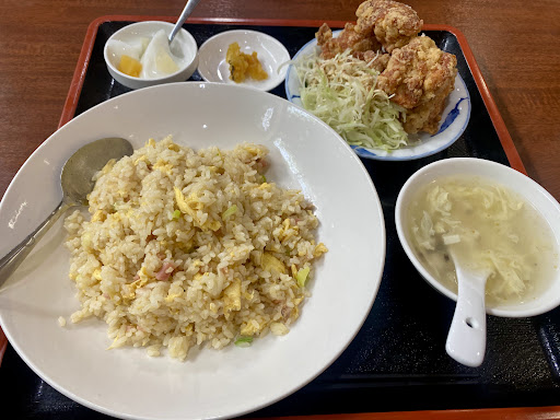 チャーハン定食のチャーハン大盛りを注文。チャーハンは優しい味付けで食べやすく美味しかったです✨✨🙌ただ趙起さんは大盛りで頼むと本当に大盛りできますがこちらの大盛りは大盛りなのか❓という量でした💦唐揚げは個人的に趙起さんよりこちらの味が好みでした👍🤤