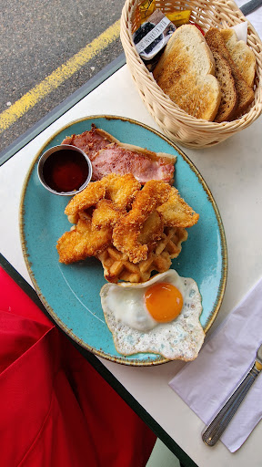 I, on the other hand enjoyed my fried chicken and waffle dish. Chicken fillet pieces coated with panko - crunchy, lively and light batter (not soggy!!). The waffle was very fluffy. It had the right amount of sweetness and a nice crunch to the edges. To balance the sweet, there are 2 pieces of salty bacon that complimented it well. The chili maple sauce on the side was good (not too chili for my asian taste but it was okay)