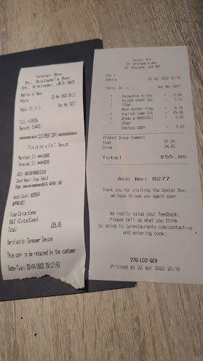 Read moreThe oyster box was at best average on overall food quality. Friendly professional staff meet and greet at the entrance to this glass fronted beach beach restaurant, and it was fairly busy on Saturday night.