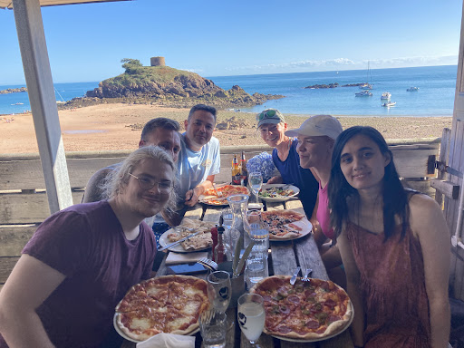 Read moreWe came to this cafe because we heard great things about it. We parked at the top of the hill and took the beach walk down the cafe. It's quite steep in places so keep that in mind if you're not very good on your feet. The food was very nice, ordered the calzone, no problems whatsoever. One thing that bothered me though were the toilets. There was an open window in the gents, that opened straight out into a store room, I thought: "that's weird". I could see the wine, orange juice and other things stored away, I could even see a sign warning about cross contamination on a fridge, kind of ironic. Let's be possitive here and just hope people flush with the seat down... think of that while you're supping on your white granache! I only realised when one of the staff walked past while I was stood there actually using the facilities! This prompted me to check the Jersey food standards website and this cafe got 5/5, so maybe it's not an issue. I just found it odd. The food really was nice and it's a shame more that half this review has been about...