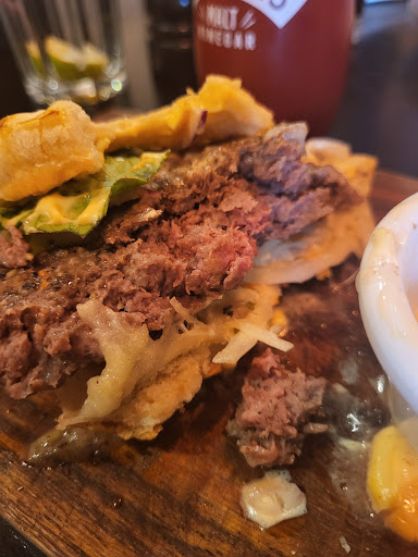 Another customer said the same about the fish and chips. And commented about my burger "Your burger still looks alive!"