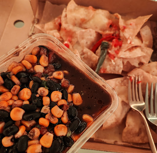 I ordered a delivery that took over an hour. The nachos weren't very tasty, had almost no cheese, and the topping was soaked with water and cold. If we had put the beans on top of the nachos, it would have made them soggy, and the mushroom quesadillas were bland.