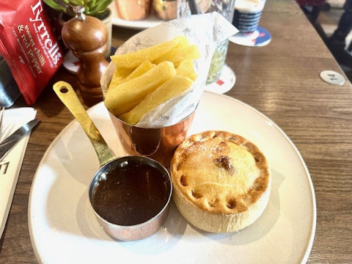 Went here because we had a 20% voucher off food. Which caused a bit of hassle- first the waitress said we would get the discount, after she checked with the manager. Then, after we ordered she came back and said they couldn't honour the discount. Then after we paid, the waitress said the manager was going to honour the 20% discount. We weren't offered a refund and surely the waitress could have told us (or her colleague) about getting the discount.... Anyway, we had the pie and chips, very good. Nice and hot with a little pot of gravy. The place itself has lots of seats with seats outside, a nice relaxing vibe inside. With background music and large TVs. With some small TVs at the booths....