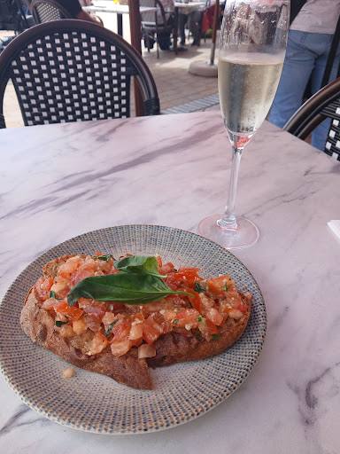 Read moreFor our last evening in Jersey we’ve decided to dine in this infamous restaurant on a beautiful and one of a kind Liberation Square… in total we’ve been served by 3 different hosts, all their energy combined together lasted maybe for half of one of them… but let’s get to the food: bruschetta for starter… simple, edible, however bread it was served on could do with less charcoal on it and more softness. Burned. Gnocchi with wild mushrooms, spinach, mascarpone and truffle was only wild for its name. Couldn’t taste truffle there, there were maybe two or three spinach leaves in… whole dish definitely looked better than it tasted ( and if you’d like to know, it tasted plain, boring and without flavour ) . Wine was alright. For all this fancy entourage, olive trees and waiters acting fancier then they should, at least the bill could’ve been handed in a leather wallet / on a plate, instead was dropped on a wet table. Thankfully there was no option to tip! Look...