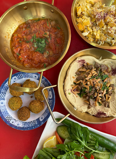 Hummus and falafel are a must, their sunny side up done perfectly, veggie omelet is simple not fluffy but very good. Galayeh was tasty. Foul with tahini was not my fav. Chicken liver dish is very tasty according to my friend Enjoy yet, it is a place that I visit...