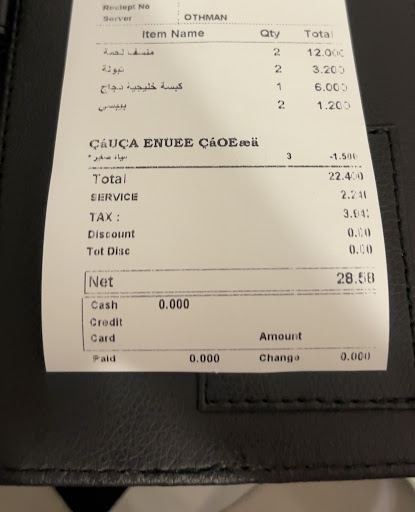 Read moreTo be honest I tried the restaurant twice the first time it was good but I did not like the staff's style at all they dealt with it in an arrogant way and the second time it was very very very bad the service is very bad and the staff were in the same way I ordered chicken kabsa it was very average and unfortunately cold and I ordered two lamb mansaf and two soft drinks the food was very late and came cold the meat was chewed a lot we told them about the problem and they did not respond the soft drinks arrived late the family did not finish the mansaf meals because it was bad and we asked for bread that was baked in front of us and they did not bring it and with that they took 2.00 JD service tax on the bill and I did not find the service at all knowing that when we finished we told the cashier about the problem and they did not...