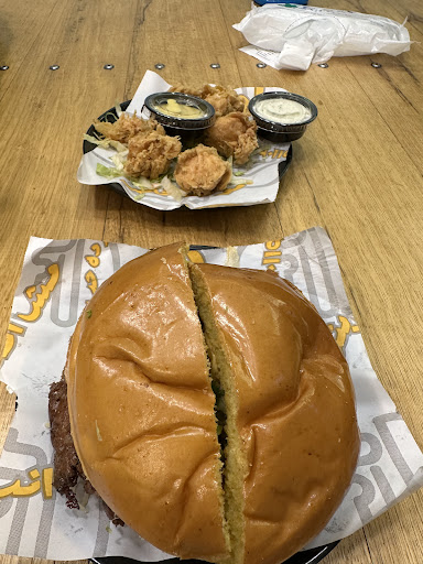 Burger is bland in a nutshell, the meat is tasteless and ordering the fire I expected some heat but no heat was coming out of the couple green pepper pieces they had on it, and the issue that the meat texture was like old frozen kofta.