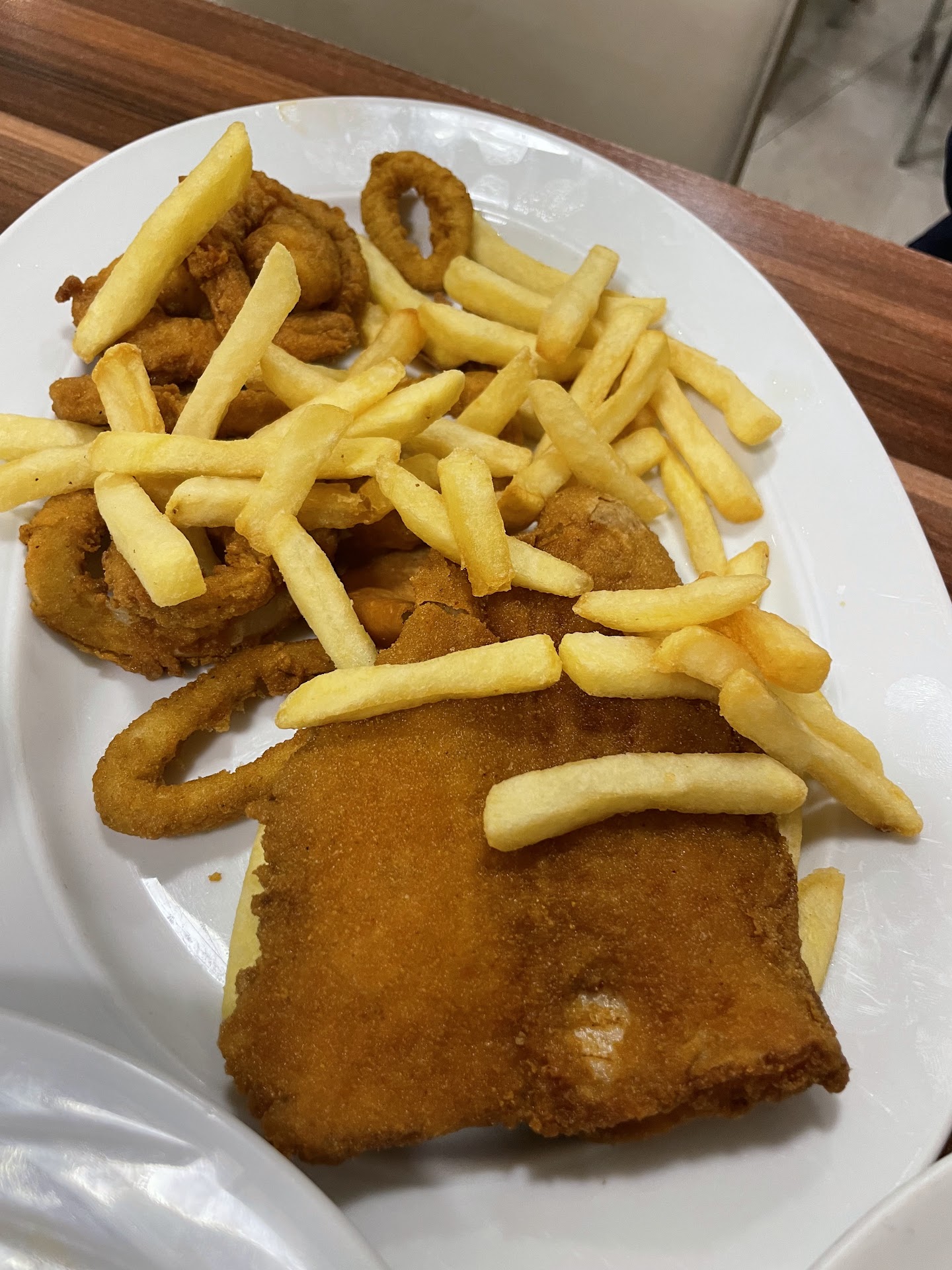 The star of the meal, however, was the grilled Gilt-head bream. It was cooked to perfection—tender, flavorful, and with a smoky char that enhanced the freshness of the fish. The fried shrimp were crispy on the outside, juicy on the inside, and seasoned just right. We also ordered mussels, which were fresh and full of flavor, cooked to a delightful tenderness.